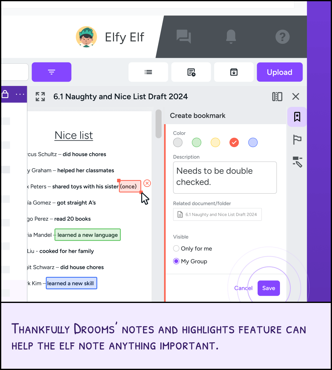Santa enables the Q&A feature so the elves can ask questions directly within the data room. Whether it’s about the latest toy design or a delivery route, the answers are just a click away.